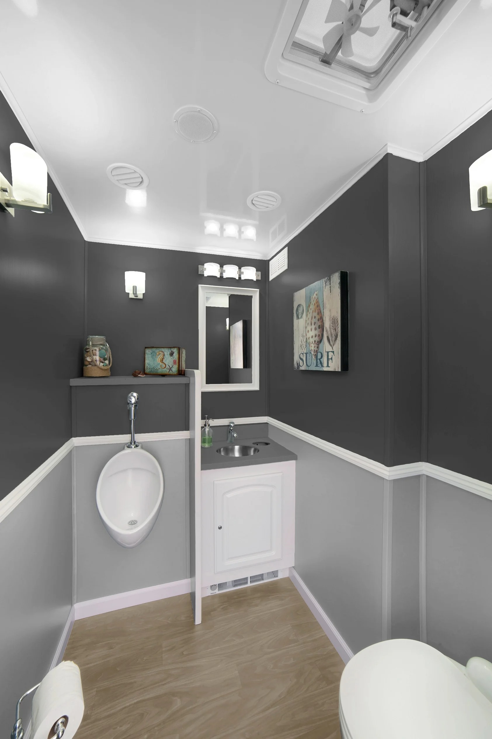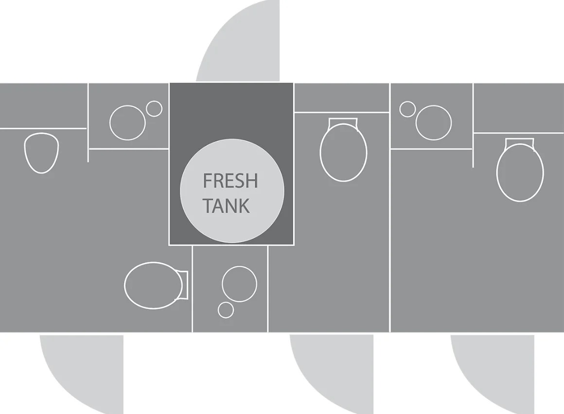 Stalls in this restroom trailer are versatile, meaning that each stall can be set up for either men or women’s use – depending on your specific needs.