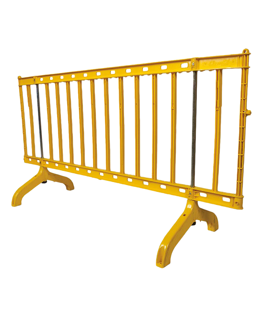 These crowd barriers are perfect for a small art show or fair. They are bright orange, 8’ long and interconnect to form a long barrier. Suitable for use for both crowds or side streets. There are available in a quantity of 40 barriers.