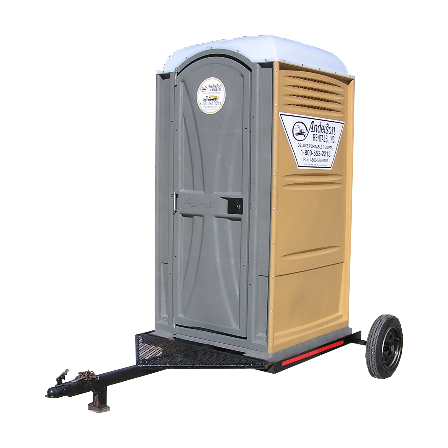 These towable portable restrooms are mounted on utility trailers to allow easy transport between jobs by the customer’s vehicle. If your job is too inaccessible we can also arrange to service them at your main facility between uses. These portable restroom rentals are available with any hitch you need, just let us know. Please note that trailers can be rigged for open road transport but speeds cannot exceed the safety rating of the tires. Anderson Rentals provides a multitude of different portable rental options, like restrooms, restroom trailers, dumpsters, and more in Florida, from Palm Beach County to Orlando to Lake County.